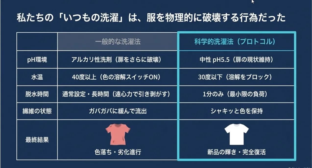 「お湯=正解」という洗濯の常識が、なぜ色落ちのリスクになるのか詳しく解説しています。