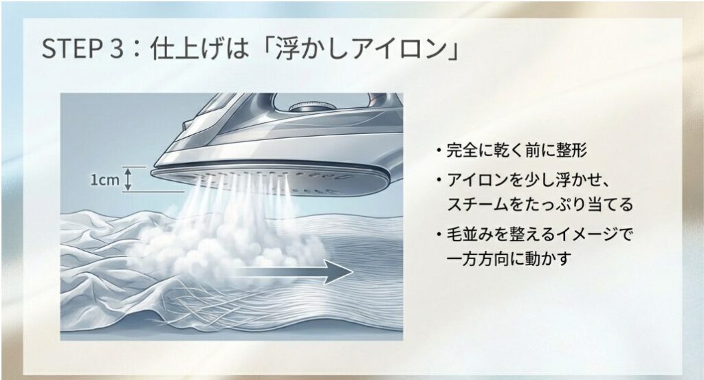 まず大切なのは、失われた繊維の滑らかさを取り戻すこと。 そして、アイロンの熱を「潰す力」ではなく「整える力」に変える道具を揃えることです。