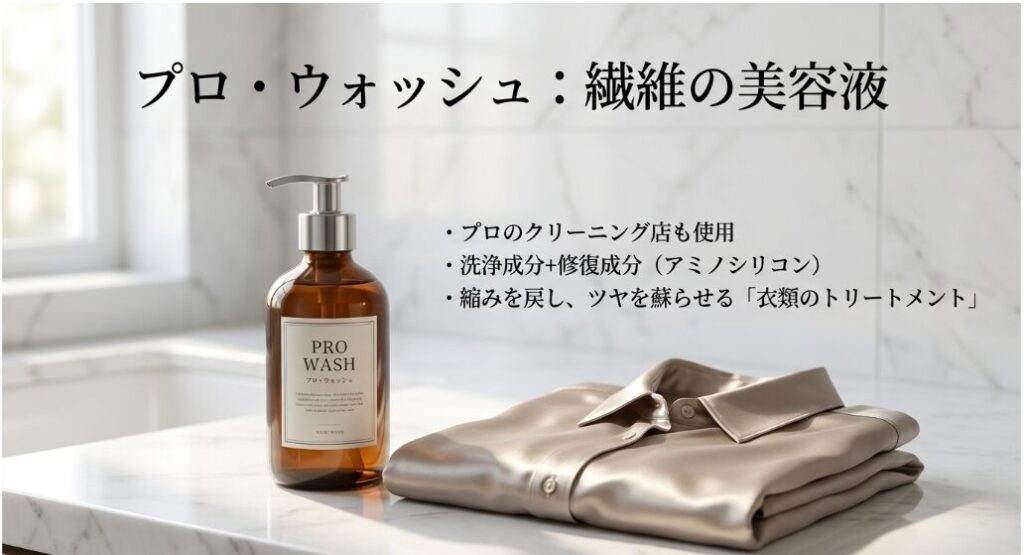 ヘアコンディショナーは「髪をコーティングする」のが目的ですが、プロ・ウォッシュは「繊維の芯を整える」のが目的です。成分の粒子サイズや界面活性剤の配合比率がキュプラに合わせて作られているから、仕上がりの「軽さ」と「復元力」が全然違うんですよね。