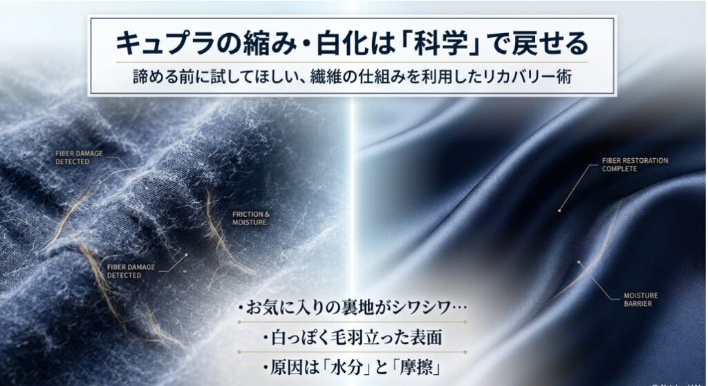 • 失敗の正体:なぜキュプラは縮み、アイロンでテカるのか?