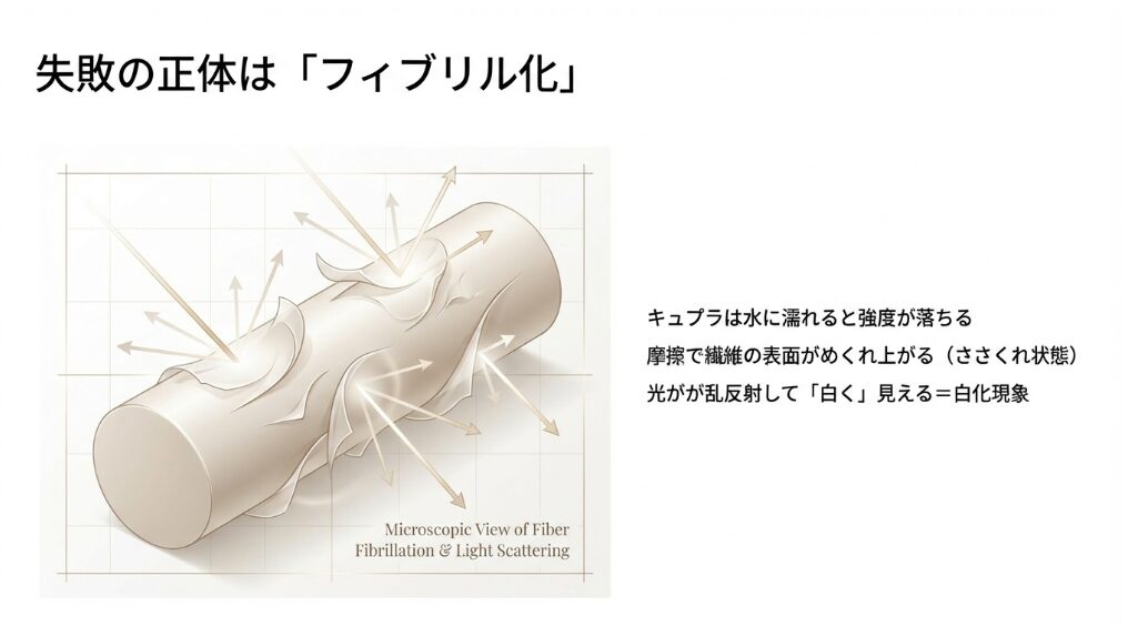 • 失敗の正体:なぜキュプラは縮み、アイロンでテカるのか?