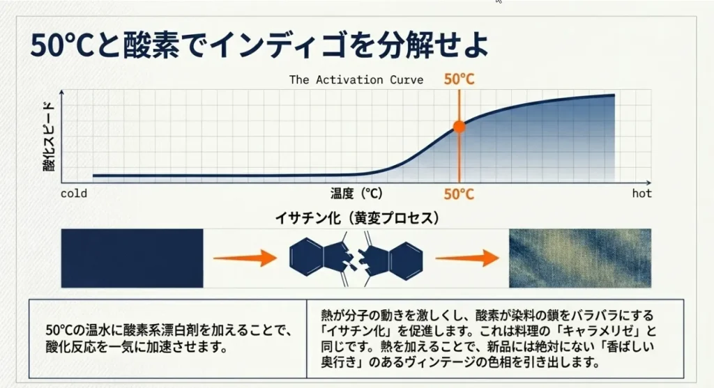 50度の熱を味方に!インディゴの鎖を断ち切る酸化ブースト