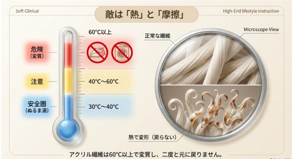 なぜ毛が固まる?アクリル繊維が熱に弱い理由
