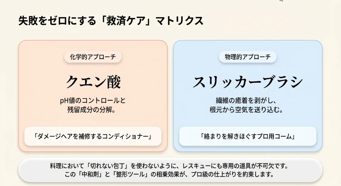 絶望からの生還!クエン酸でpH値を「中和」して質感を戻す