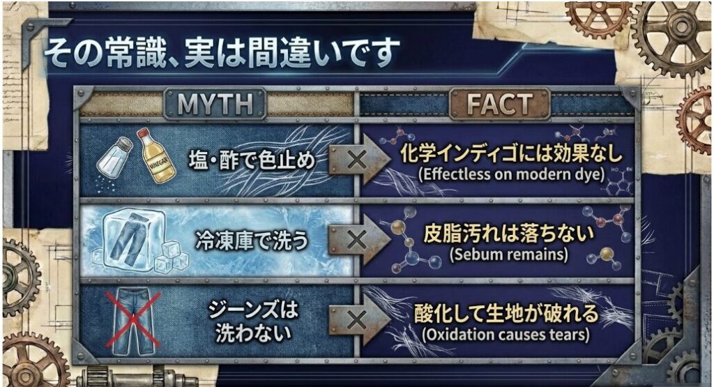 いかがでしょうか?手間はかかりますが、この工程を丁寧に踏むことで、ただ「洗って乾かす」だけでは到達できない、しっとりと整ったデニムに戻るはずです。次は、この救出劇を支える「福井ならではの工夫」や「SNSの知恵」についても触れていきますね。