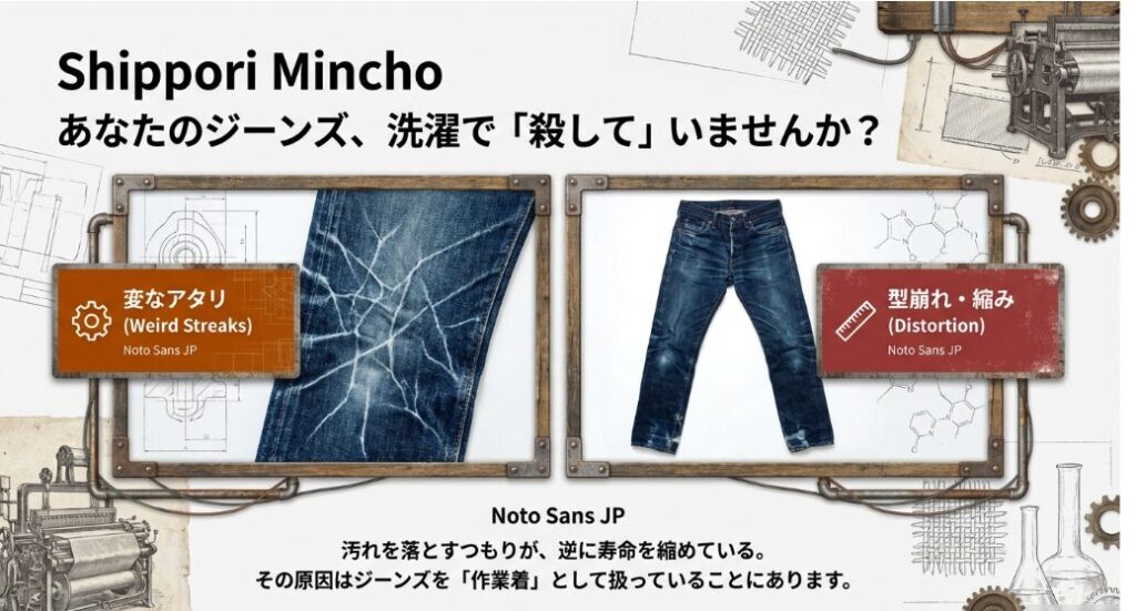 ジーンズの洗濯に失敗して、目の前が真っ暗になったあの瞬間。私も同じ道を通り、同じように肩を落としてきました。でも、その失敗はあなたが「大切なものを、もっと大切にしたい」と思った証拠でもあります。