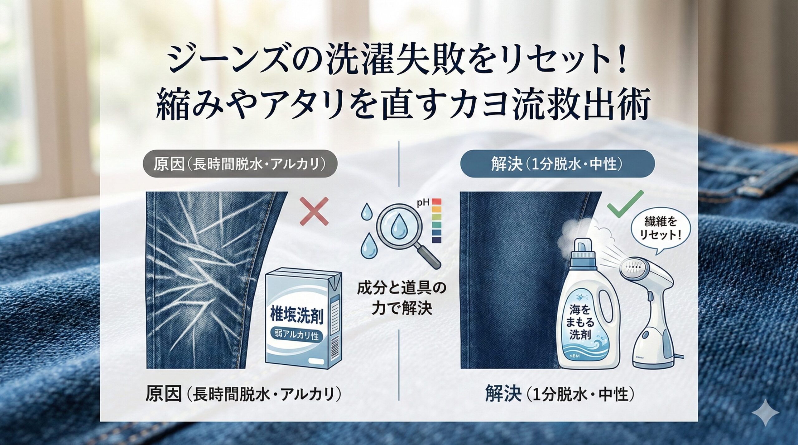 ジーンズの洗濯に失敗して、目の前が真っ暗になったあの瞬間。私も同じ道を通り、同じように肩を落としてきました。でも、その失敗はあなたが「大切なものを、もっと大切にしたい」と思った証拠でもあります。