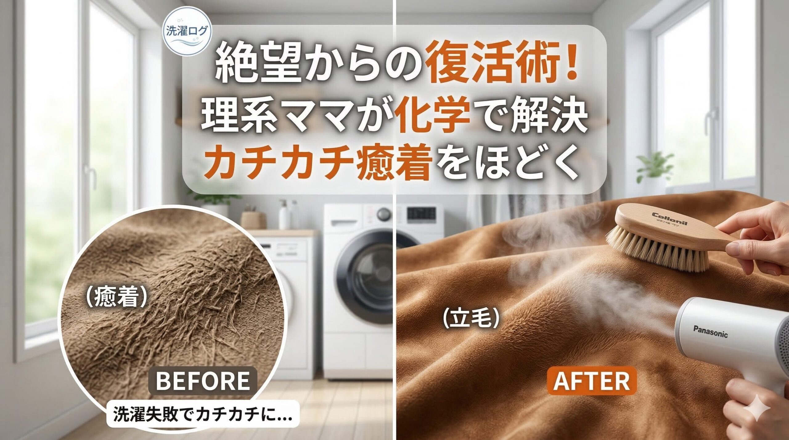 カチカチの正体は繊維同士がくっついた「癒着」です。蒸気の熱で緩め、弾力のあるブラシで一本ずつ起こしてあげれば、元の柔らかさが戻りますよ。