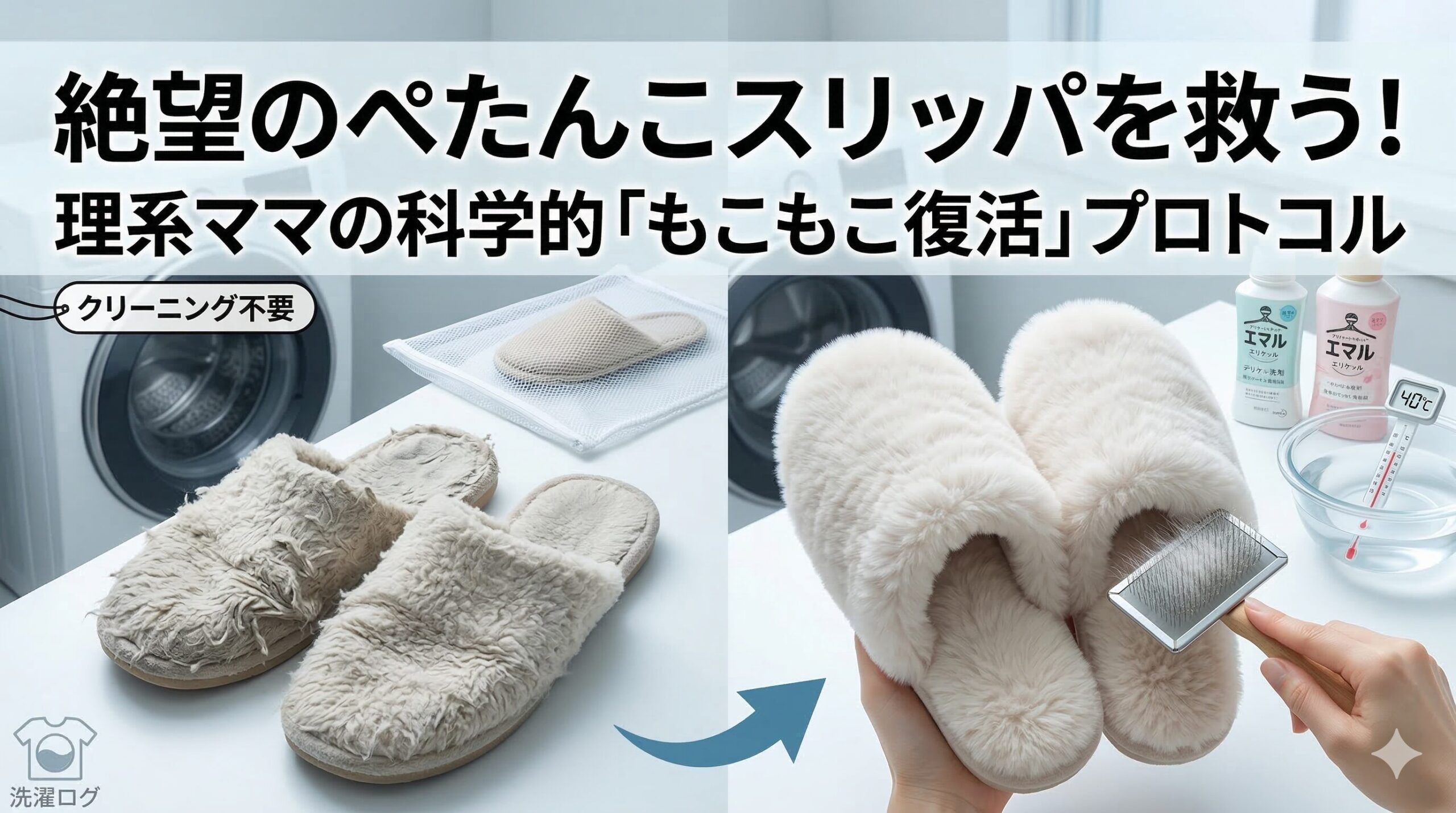 実は、もこもこスリッパの起毛(フェイクファーなど)を復活させるには、単に汚れを落とすだけでなく、繊維の「立ち上がり」を物理的にコントロールする科学的なプロトコルがあるんです。1日3回洗濯機を回し、数々の「ぺちゃんこ失敗」を乗り越えてきた私が、理系視点で導き出した「もこもこ復活洗浄術」を伝授します。一緒に、あの至福の触感を取り戻しましょう!