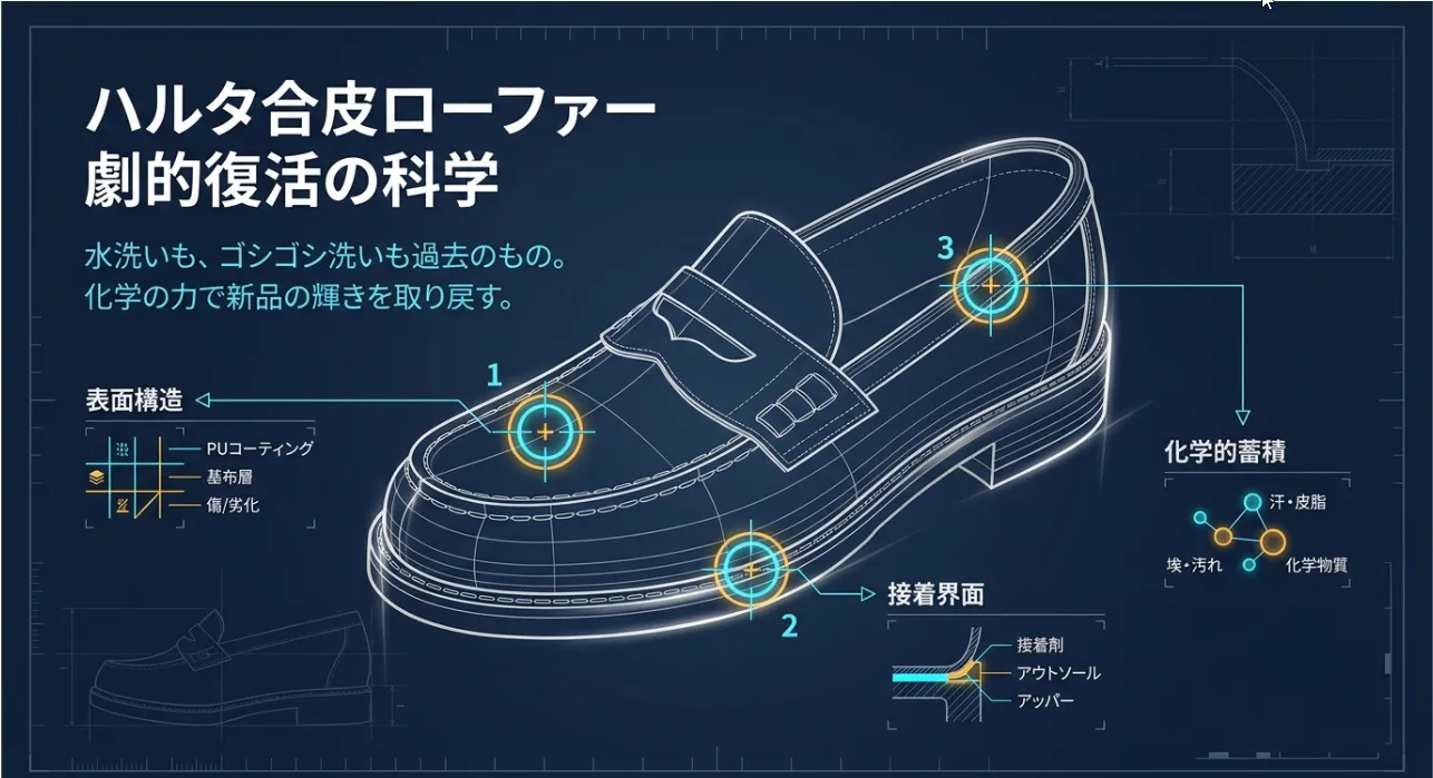 靴の内部も襟元も、原因は同じ「皮脂と汗」。プロの分解術が応用できます。