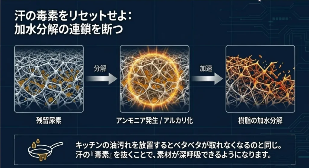 繊維の奥の「泥と汗」を化学的に分解して抜く手順