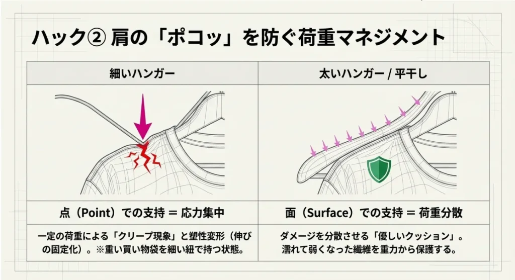 肩の跡を物理で防ぐ!重力加速度に負けない干し方のコツ