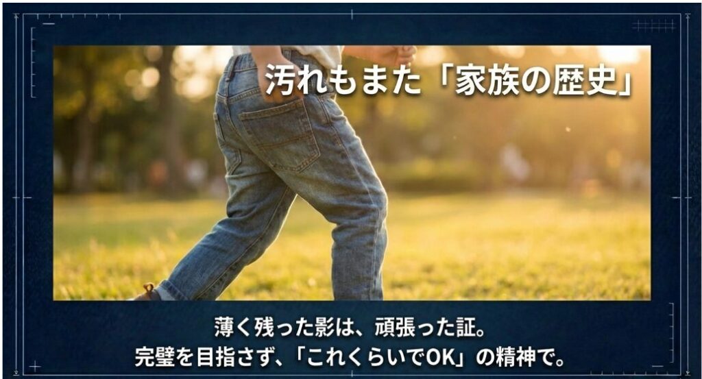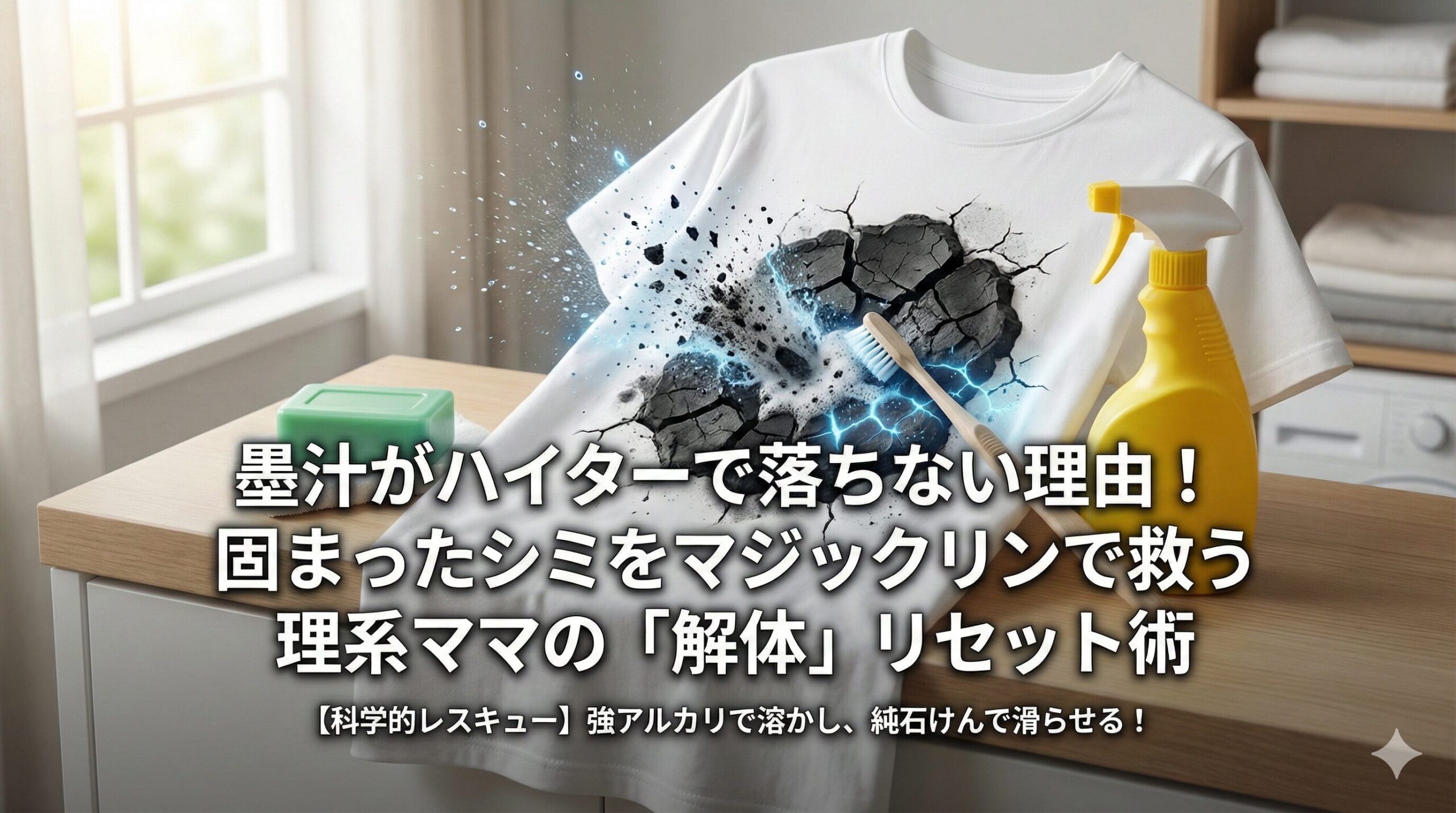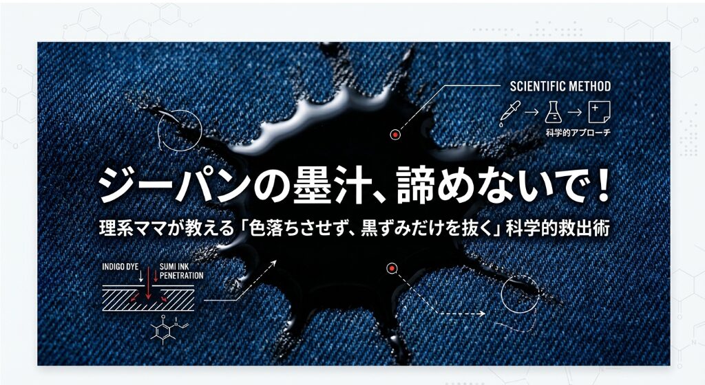 墨の黒さを白くしたい一心でハイターを使うと、インディゴが破壊され、不自然な真っ白い斑点が一生残ることになります。デニムにとってハイターは「劇薬」です。焦っている時ほど、まずは「分解と抽出」という理系ママの鉄則を思い出してください。