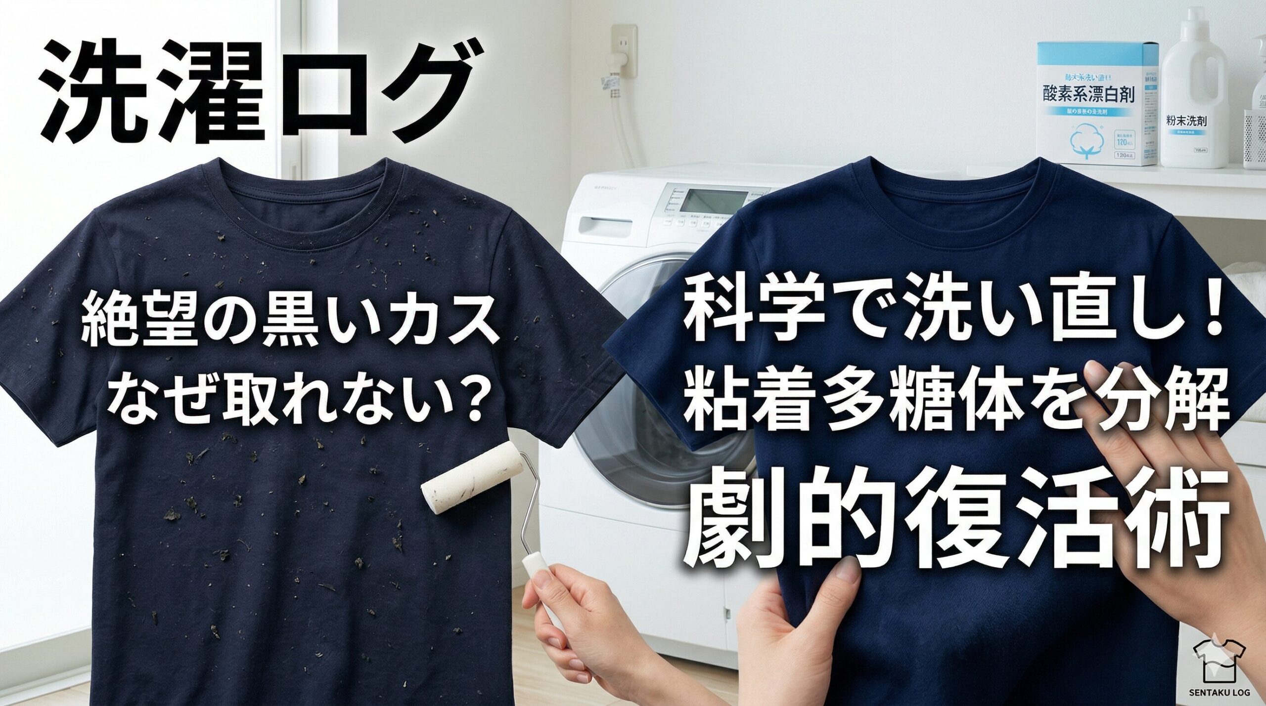 せっかく洗ったお気に入りの服に、ポツポツと付着した「黒いカス」。ショックですよね。慌てて粘着テープ(コロコロ)を取り出したあなた、ちょっと待ってください!その黒いカスの正体を知らずに物理的な力で解決しようとするのは、実は一番やってはいけない「NG行為」なんです。