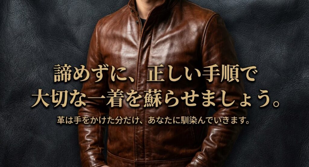 いかがでしたでしょうか。大切にしていた革ジャンを洗濯して失敗してしまったショックは、計り知れないものがありますよね。でも、今回ご紹介した「縮みの戻し方」や「硬化へのオイルケア」、そして「プロへの相談」という道を知っているだけで、少しは心が軽くなったのではないでしょうか。失敗は成功のもと。次に手入れをする時は、きっと今回の経験を活かしてもっと上手にケアできるはずです。