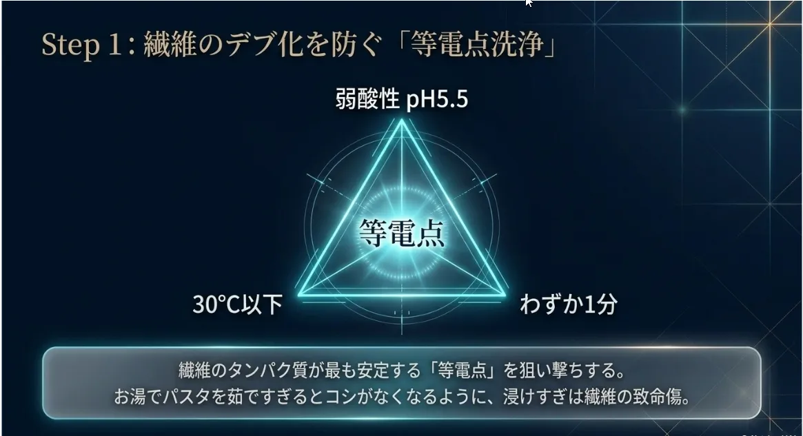 1分で勝負!繊維を膨らませない「等電点」洗浄の具体的ステップ