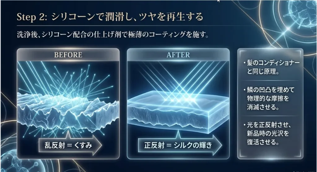 絡まりを物理で防ぐ!シリコーン仕上げで「鏡面光沢」を取り戻す