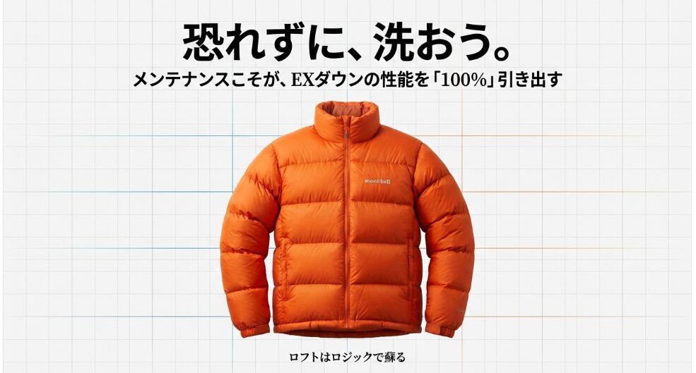 でも、安心してください。モンベルのダウンはファッションではなく、命を守る「ギア(道具)」として設計されています。その「EXダウン」が持つ驚異的な復元力を信じましょう。高専教師だった父の「構造を理解しろ」という教えを今こそ発動させます。理系の目線で正しくアプローチすれば、その絶望は必ず「納得の仕上がり」に変えられますよ。