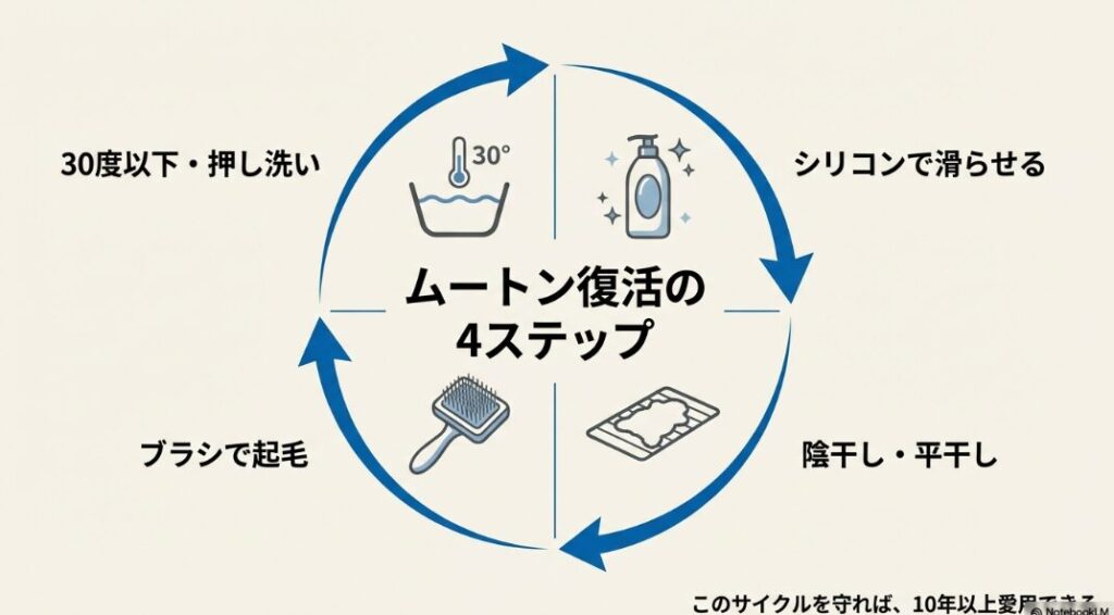 あわせて読みたい:ムートンの洗濯はシャンプーが正解!ふわふわに戻す理系ママの全工程