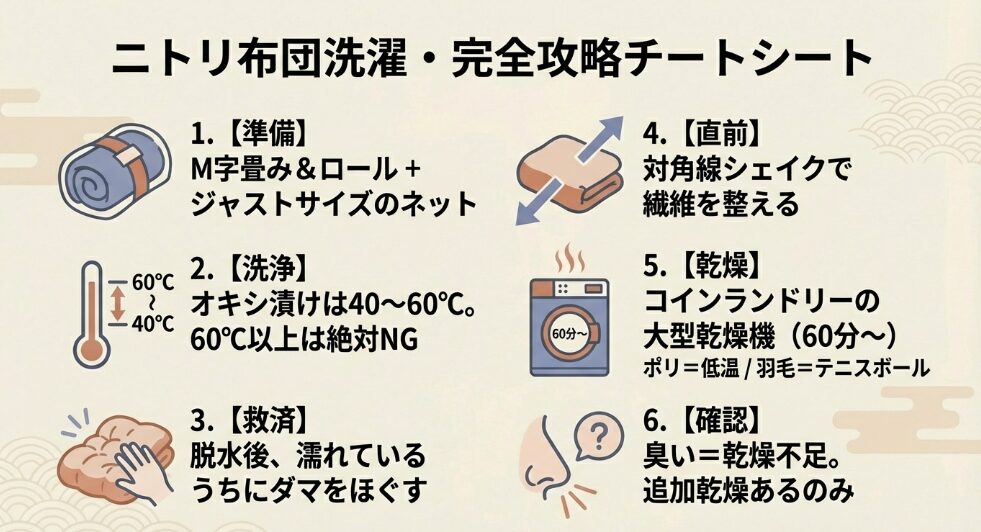 あわせて読みたい:ニトリの布団は洗濯ネットの形で決まる!偏りを防ぐ物理学的ネット選び