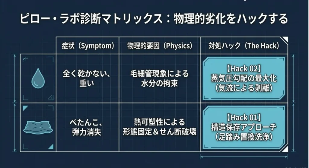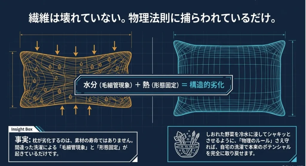 素材別・洗濯後に枕が「死ぬ」物理的な正体