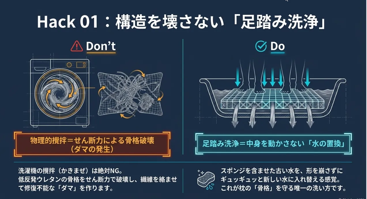 物理で解決!ニトリ枕の「水はけ」をハックする洗い方