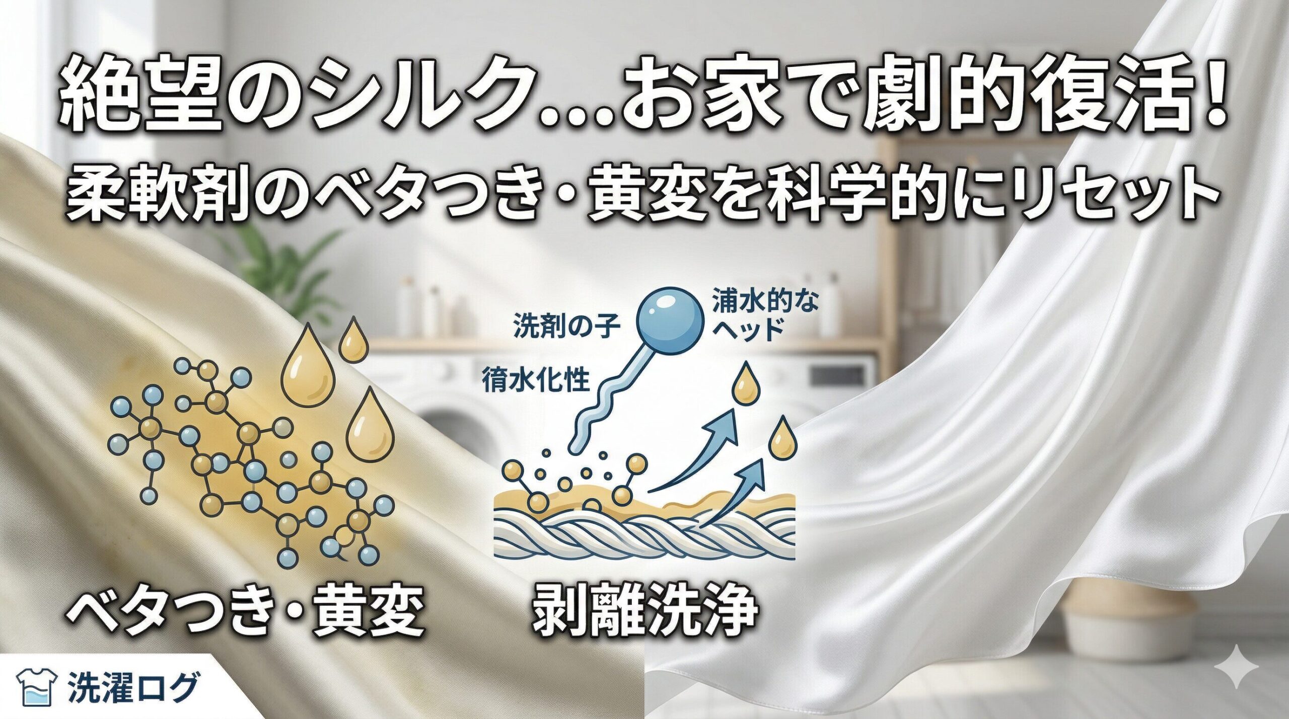 「大切だからこそ、柔らかく仕上げたい」という親心が、実はエルメスにトドメを刺しているかもしれません。柔軟剤の成分はシルクの繊維を過剰にコーティングし、特有のハリを奪ってベタつきを招く「天敵」なのです。もし誤って使ってしまったなら、化学的なアプローチでその油膜を安全に取り除く必要があります。理系ママが教える、柔軟剤のベタつきをリセットするための科学的処方箋をぜひ確認してください。