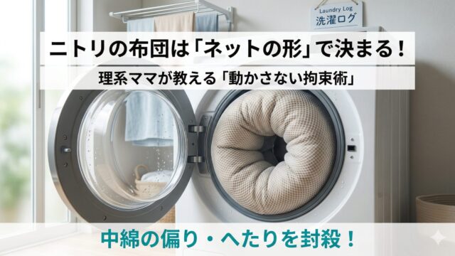 衣類・布製品の【洗濯失敗】復活術 ニトリの布団は洗濯ネットの形で決まる!偏りを防ぐ物理学的ネット選び ニトリの布団を洗濯ネットで洗って失敗したくない方へ。理系ママが「中綿を動かさない物理的な拘束術」を伝授!実はニトリの布団には、形状と水流抵抗を計算した洗濯ネット選びが不可欠です。中綿の偏りやへたりを科学的に防ぎ、お家で新品のフカフカを取り戻す具体的な手順と道具を詳しく解説します。 2026.03.26 衣類・布製品の【洗濯失敗】復活術