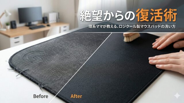 ロジクールのマウスパッド、洗い方を間違えるとセンサー精度が落ちるって知っていましたか?理系ママが、ゴムの加水分解を防ぎ滑りを復活させる正しいマウスパッドの洗い方を徹底解説。中性洗剤での押し洗いと仕上げのブラッシングで、あなたのロジクール製デバイスを新品同様に蘇らせましょう!
