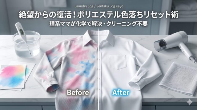 素材別・失敗しない「正しい洗い方」 なぜポリエステルが色落ち?理系ママが教える昇華を止める復元術 ポリエステルは色落ちしないという常識を覆す「色の脱走」。なぜアイロン熱や洗剤で色が移るのか?理系ママが繊維科学の視点からポリエステル色落ちのメカニズムを徹底解説!色移り防止シートや冷風仕上げで、お気に入りの一着を一生モノに変える具体的なレスキュー術を教えますね。 2026.04.16 素材別・失敗しない「正しい洗い方」