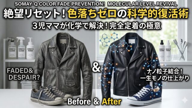 染めQで色落ち防止を叶えるには「分子レベルの結合」を味方にするのが近道!理系ママが脱脂やプライマーによる完全定着の手順をロジカルに解説します。15cmの黄金距離や薄塗り多層化など、染めQの色落ち防止に欠かせない科学的コツを知れば、大切な一着を一生モノの相棒として蘇らせることができますよ。
