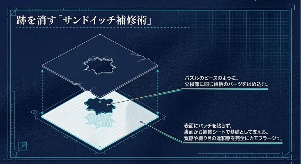 穴をなかったことに!共布を使った「サンドイッチ補修」の全手順