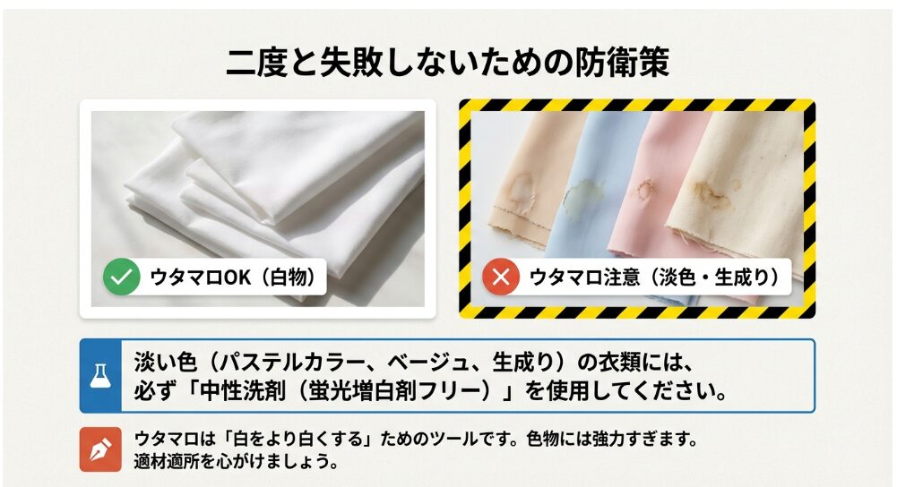 - 失敗の正体:色が抜けたのではなく、蛍光増白剤が「乗りすぎた」光学的現象