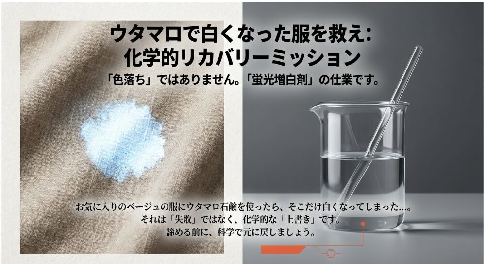 「ベージュのチノパンが、ウタマロでこすった所だけ真っ白になった」「お気に入りのネイビーのTシャツが、まだら模様に色抜けして絶望してる……」。SNSやQ&Aサイトを覗くと、そんな悲痛な叫びが後を絶ちません。実は私も、長男が小さかった頃、彼の生成りのパーカーをウタマロで洗って「発光するような白」に変えてしまい、脱衣所で呆然とした一人です。