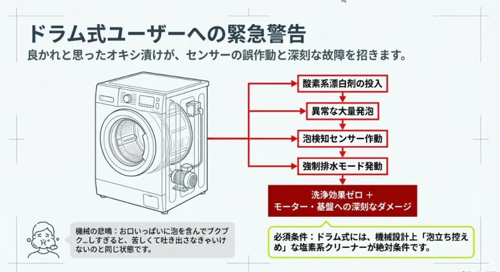 ドラム式にオキシはNG!泡による故障リスクを回避せよ