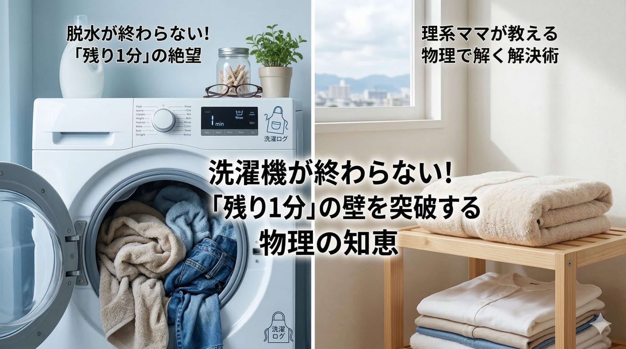 実はこれ、洗濯機が故障しているわけではないんです。1分という表示の裏側で、洗濯機の中にある「センサー」が必死にあなたと衣類を守ろうと戦っている証拠。理系ママの視点から言わせてもらうと、この現象は「物理の法則」をちょっとだけ味方につけるだけで、驚くほどあっさりと解決できます。