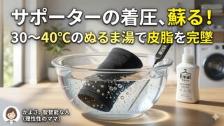 お風呂の残り湯より少し熱めのお湯に漂白剤を溶かし、30分ほど座布団を沈めておくだけ。これだけで、あの不快な「戻り臭」に怯える必要はなくなりますよ。